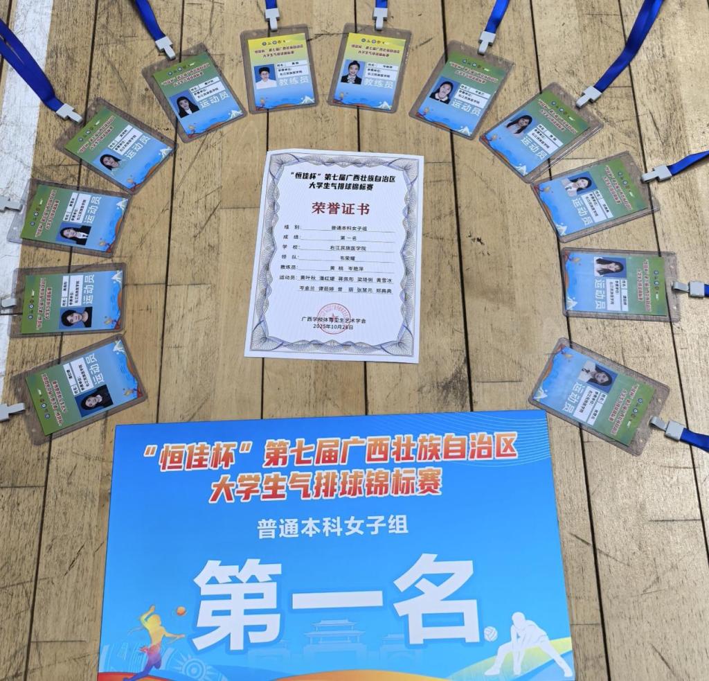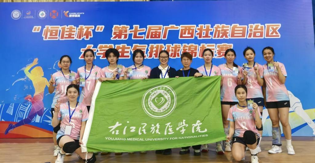 10月25日,“恒佳杯”第七届广西壮族自治区大学生气排球锦标赛在广西民族大学开赛,经过两天激烈对决,右江民族医学院女子气排球队凭借出众的实力、默契的配合和顽强的意志,成功斩获普通本科女子组冠军!